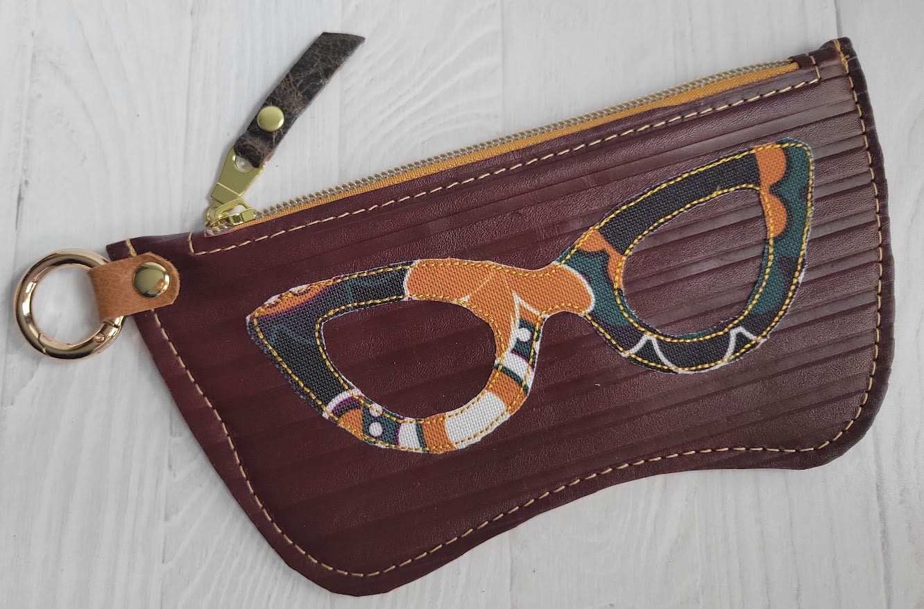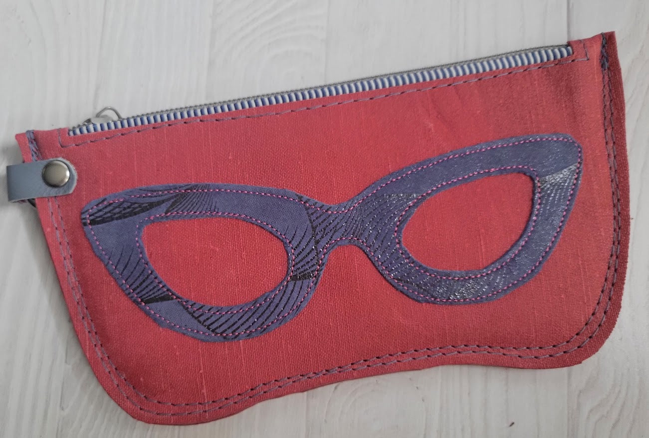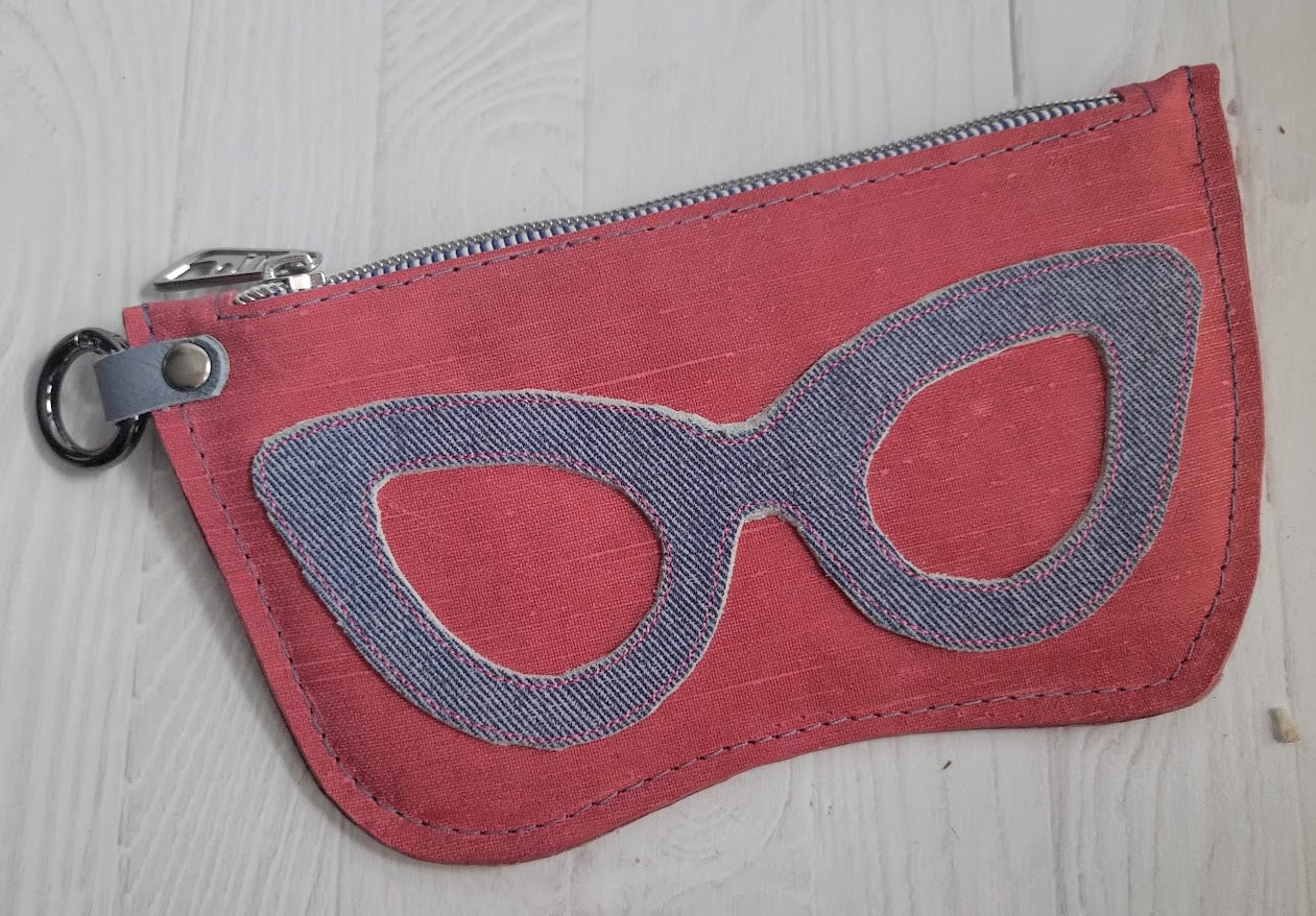 Fun eyeglass case with glasses appliqued on exterior. Fits most size glasses & sunglasses.