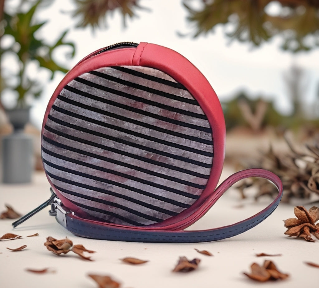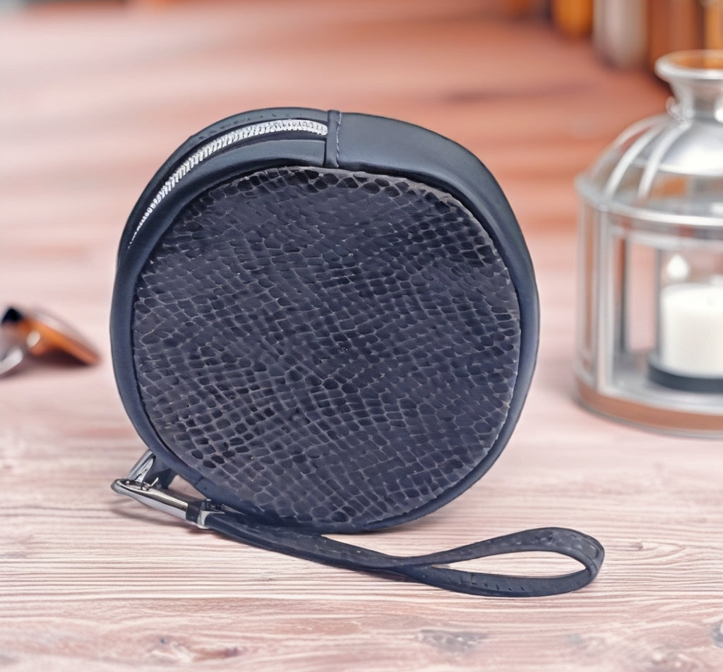 Stylish circle pouch. Clip to your crossbody strap or carry as a wristlet.